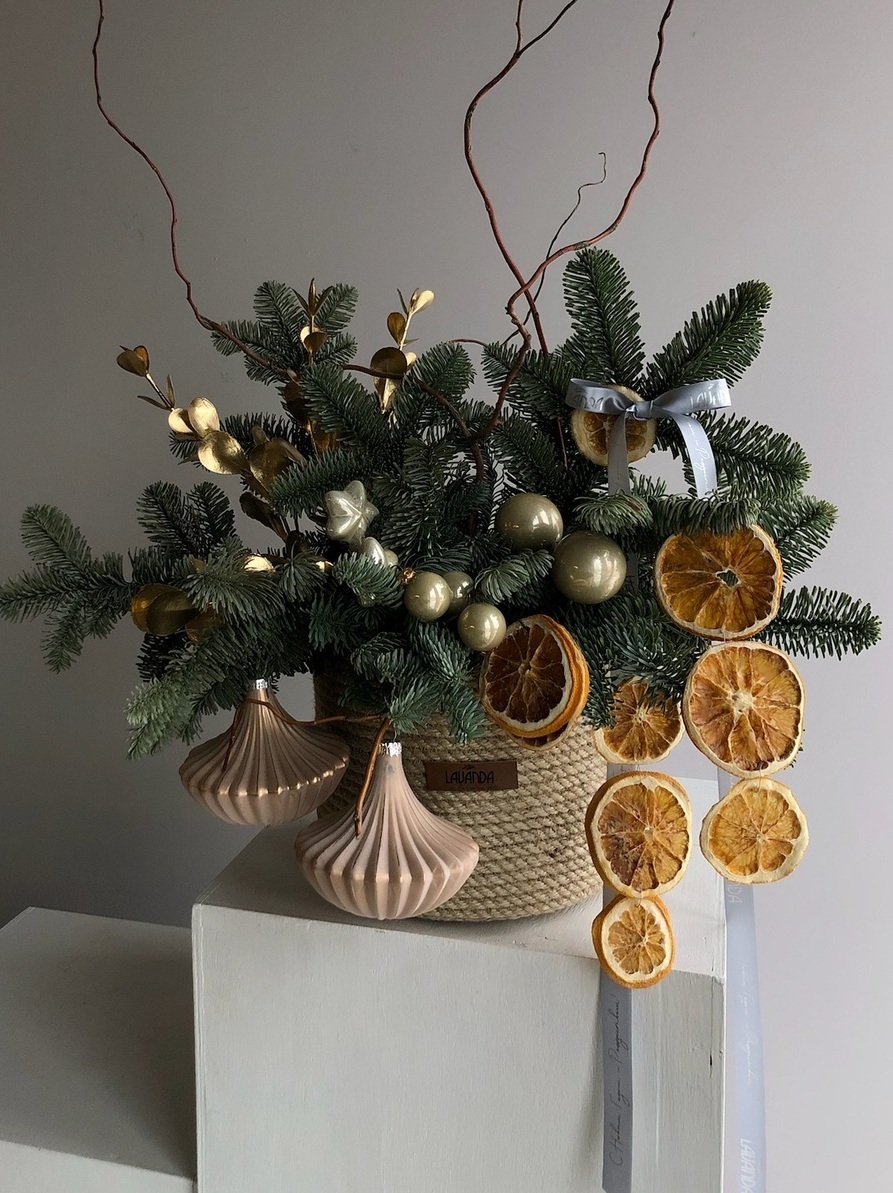 Приносите игрушки и форму от прошлогодней композиции и мы обновим ее ароматной свежей хвоей.