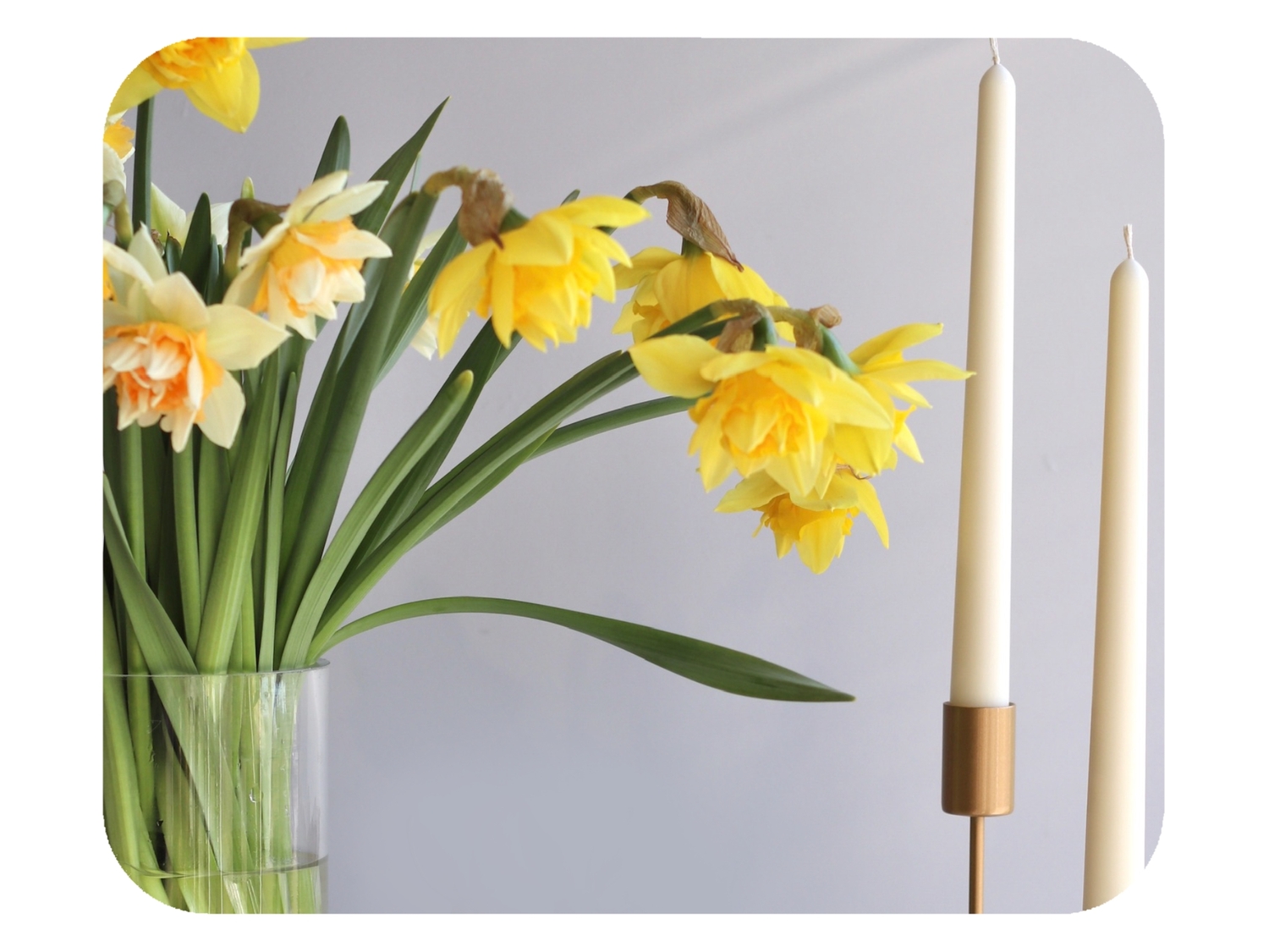 Большая низкая композиция со свечами.