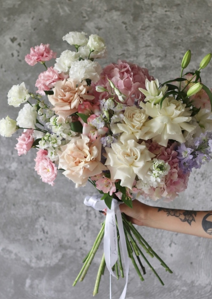 Это галерея для вдохновения: вы можете ориентироваться на стиль, размер, цветовое настроение и стоимость композиций. Если вам понравился какой-то букет, мы можем собрать нечто подобное с учётом сезонности, ваших пожеланий и актуальных цен.